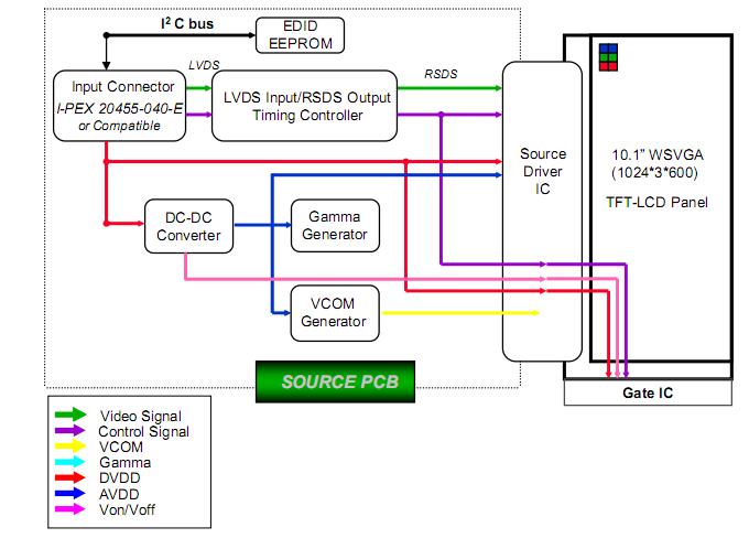 Features: (1)High contrast ratio; (2)WSVGA (1024 x 600 pixels ) resolution; (3)Low power consumption; (4)Fast Response; (5)LED Back Light with embedded LED Driver; (6)DE (Data enable) only mode; (7)3.3V LVDS Interface ; (8)Onboard EEDID chip; (9)Green product (RoHS compliant).